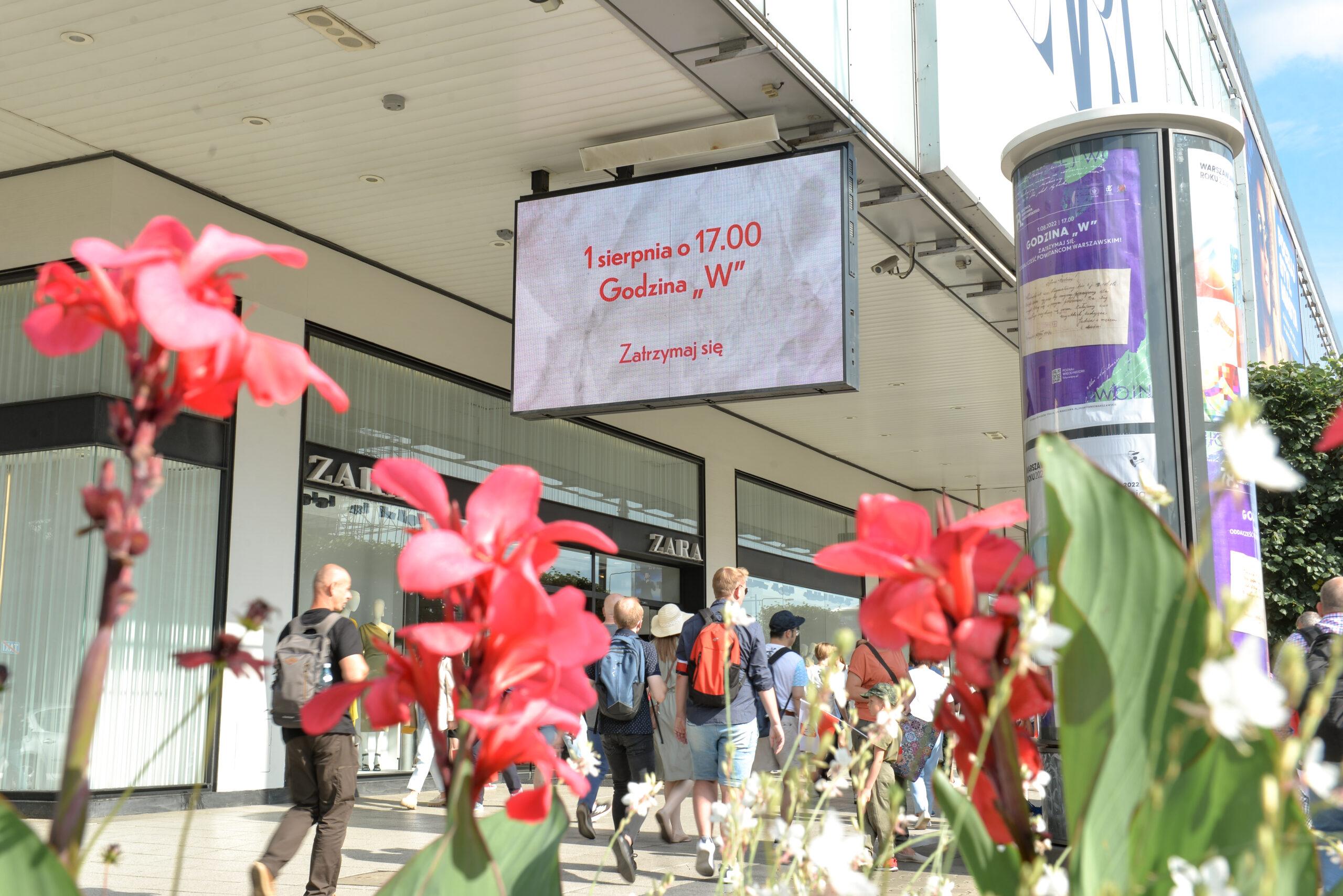 Godzina W, ekran na ul. Marszałkowskiej w Warszawie. Fot. Jet Line