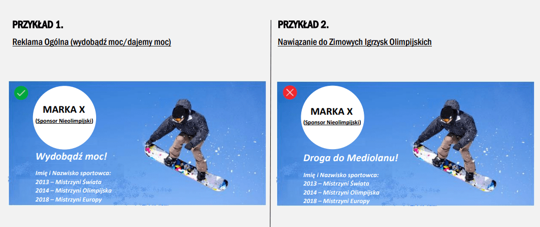 W praktyce oznacza to, że cała komunikacja – udział w spotach reklamowych, kampaniach billboardowych, a nawet treść postów w social mediach – musi odbywać według konkretnych wytycznych. A te są restrykcyjne do tego stopnia, że w praktyce oznaczają zakaz jakiegokolwiek odwoływania się do igrzysk.