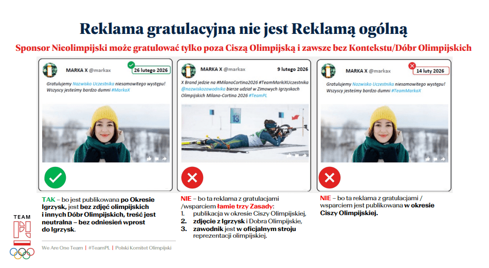 – Z perspektywy sportowca igrzyska nie są momentem na prowadzenie kampanii reklamowych – wtedy liczy się wyłącznie sport. Z kolei po stronie partnerów musimy być bardzo czujni. W przypływie emocji łatwo o niewinny post z gratulacjami, który może naruszać zasady – wyjaśnia Jan Peńsko.