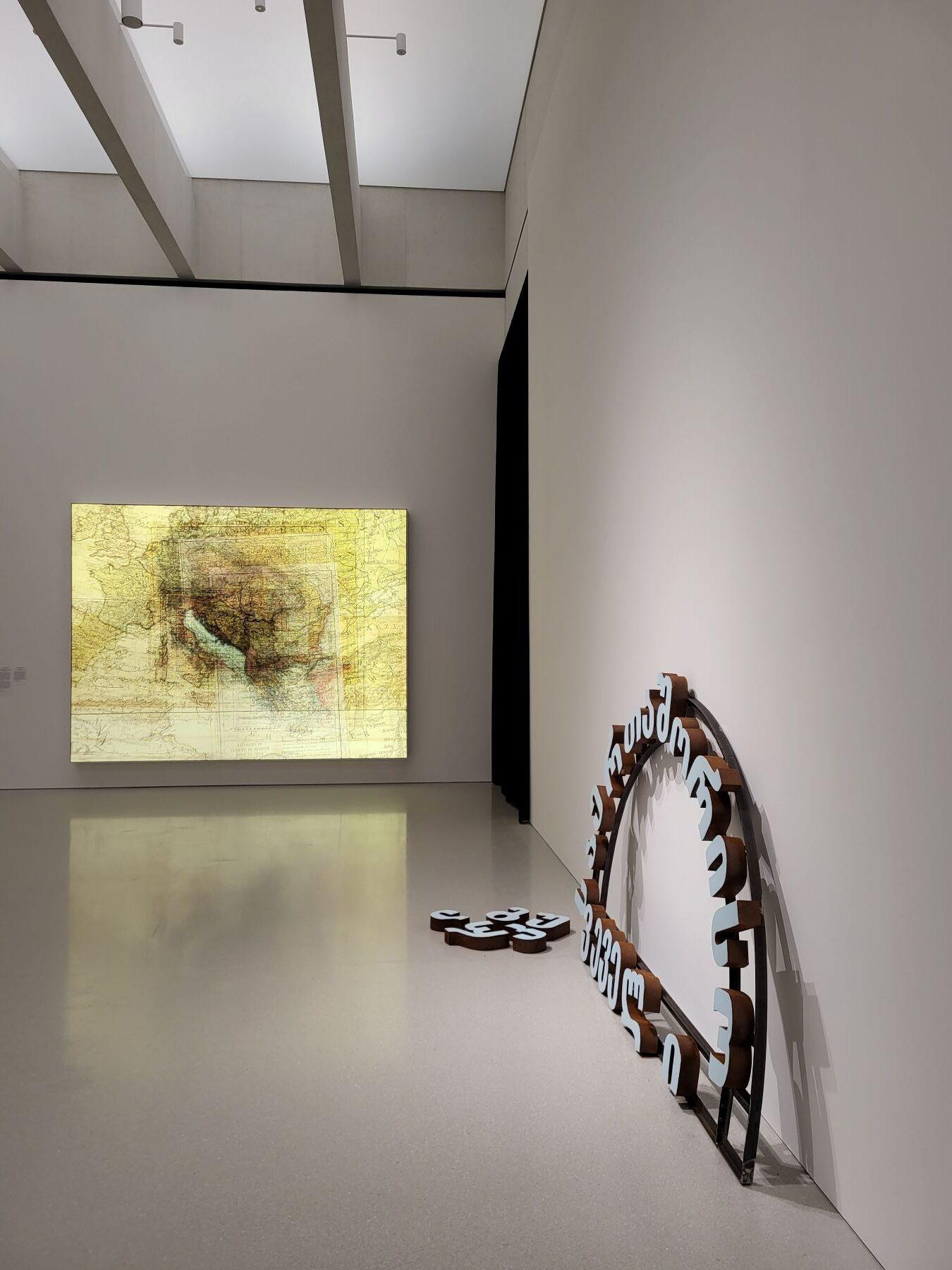 Warszawska odsłona Biennale Kijowskiego nosi tytuł Bliski Wschód, daleki Zachód i już przy wejściu podsuwa widzowi fałszywie oczywisty trop: geografię. Jedną z pierwszych prac w MSN-ie jest bowiem mapa – monumentalna, rozświetlona, a jednocześnie nieczytelna. To kartograficzny palimpsest autorstwa Lany Čmajčanin. Urodzona w Sarajewie artystka zamiast jednej mapy proponuje ich całe stado. Są wydrukowane na przezroczystych foliach, nałożone na siebie, podświetlone, zlepione w jeden wizualny chaos. Dopiero po dłuższej chwili z tej mgły linii, granic i znaków wyłania się Bośnia i Hercegowina – kraj bardziej domyślny niż oczywisty. To mapa, która nie tyle pokazuje terytorium, ile ujawnia niemożność jego stabilnego opisania.