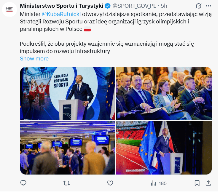 Minister sportu Jakub Rutnicki potwierdził, że igrzyska w Polsce są realnym celem, ale — jak zaznaczył — nie powinny być celem samym w sobie, lecz „ukoronowaniem wielkiej zmiany”, która ma zwiększyć aktywność fizyczną Polaków.