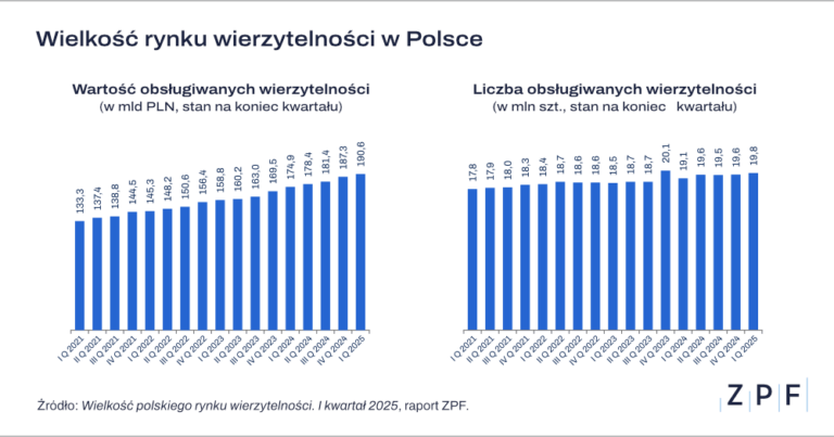 Firmy windykacyjne na koniec pierwszego kwartału 2025 r. zarządzały portfelem o wartości 190,6 mld zł – wynika z 55. edycji raportu „Wielkość polskiego rynku wierzytelności” opublikowanego przez Związek Przedsiębiorstw Finansowych w Polsce (ZPF).