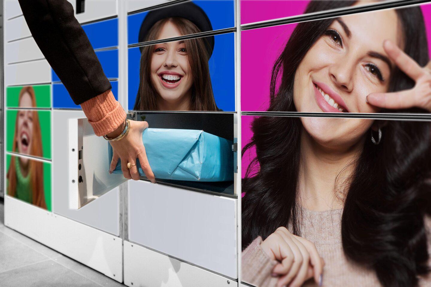 Dziewczyna wkładająca paczkę do paczkomatu