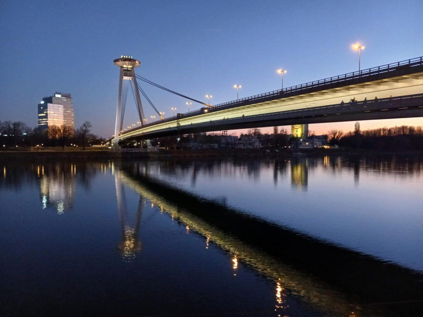 Bratysława, stolica Słowacji nocą. (fot. Bartłomiej Mayer).