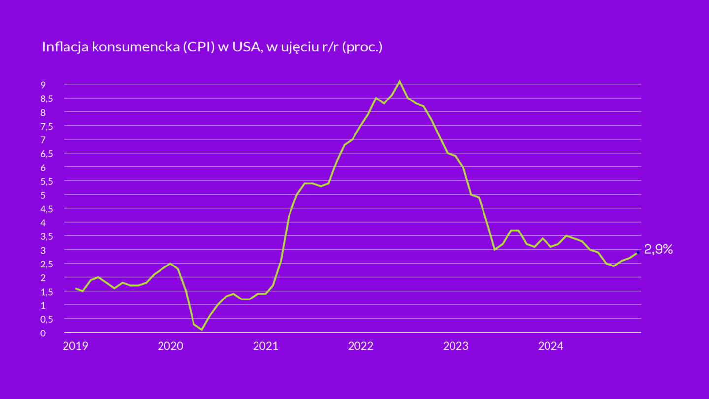 - Inflacja w USA w grudniu 2024 r. wyniosła 2,9 proc. Było to zgodne z oczekiwaniami rynku.