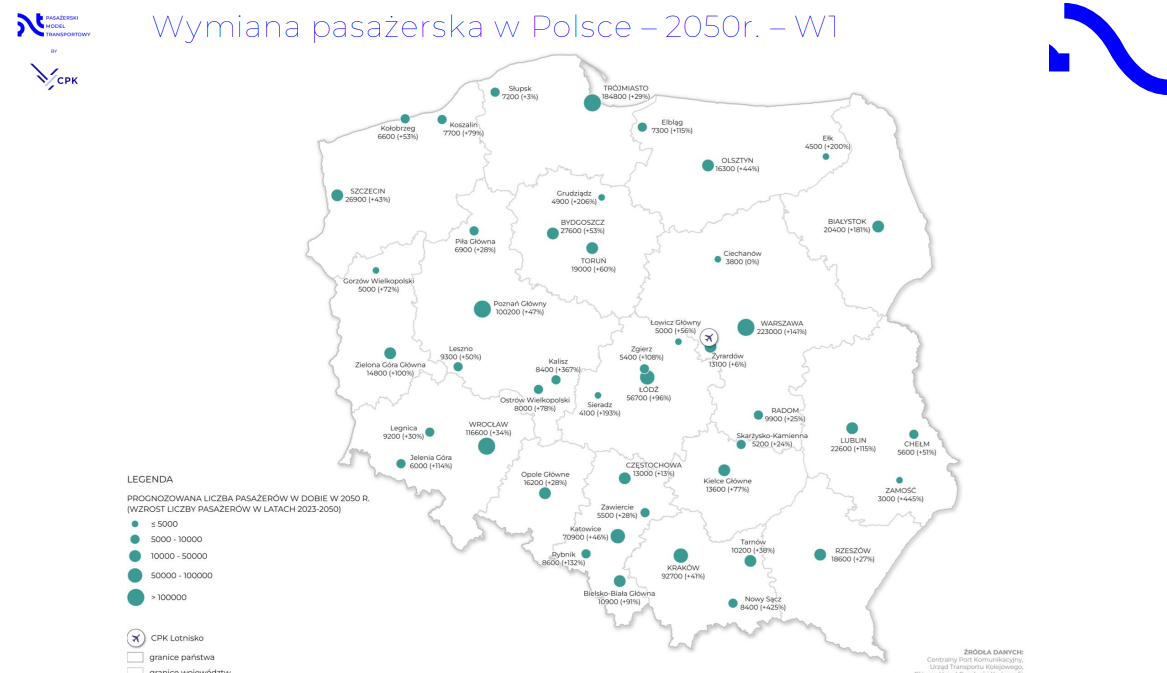 1. Według zaktualizowanych prognoz CPK liczba pasażerów kolei dalekobieżnej ma przekroczyć 140 mln rocznie w wariancie bazowym i nawet 158 mln w scenariuszu optymistycznym. Wraz z połączeniami regionalnymi liczba pasażerów może sięgnąć ponad 600 mln rocznie już w 2030 roku.
