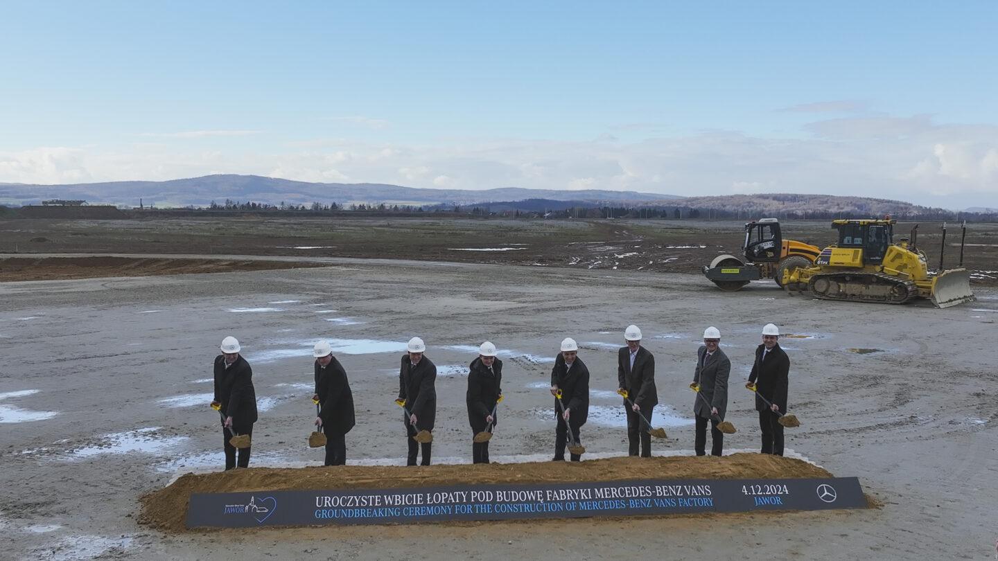 4 grudnia 2024 r. wbito łopatę pod fabrykę elektrycznych vanów marki Mercedes-Benz w Jaworze. Produkcja miała początkowo ruszyć w 2025 r., ale teraz jest mowa o końcu 2026 r. fot. materiały prasowe