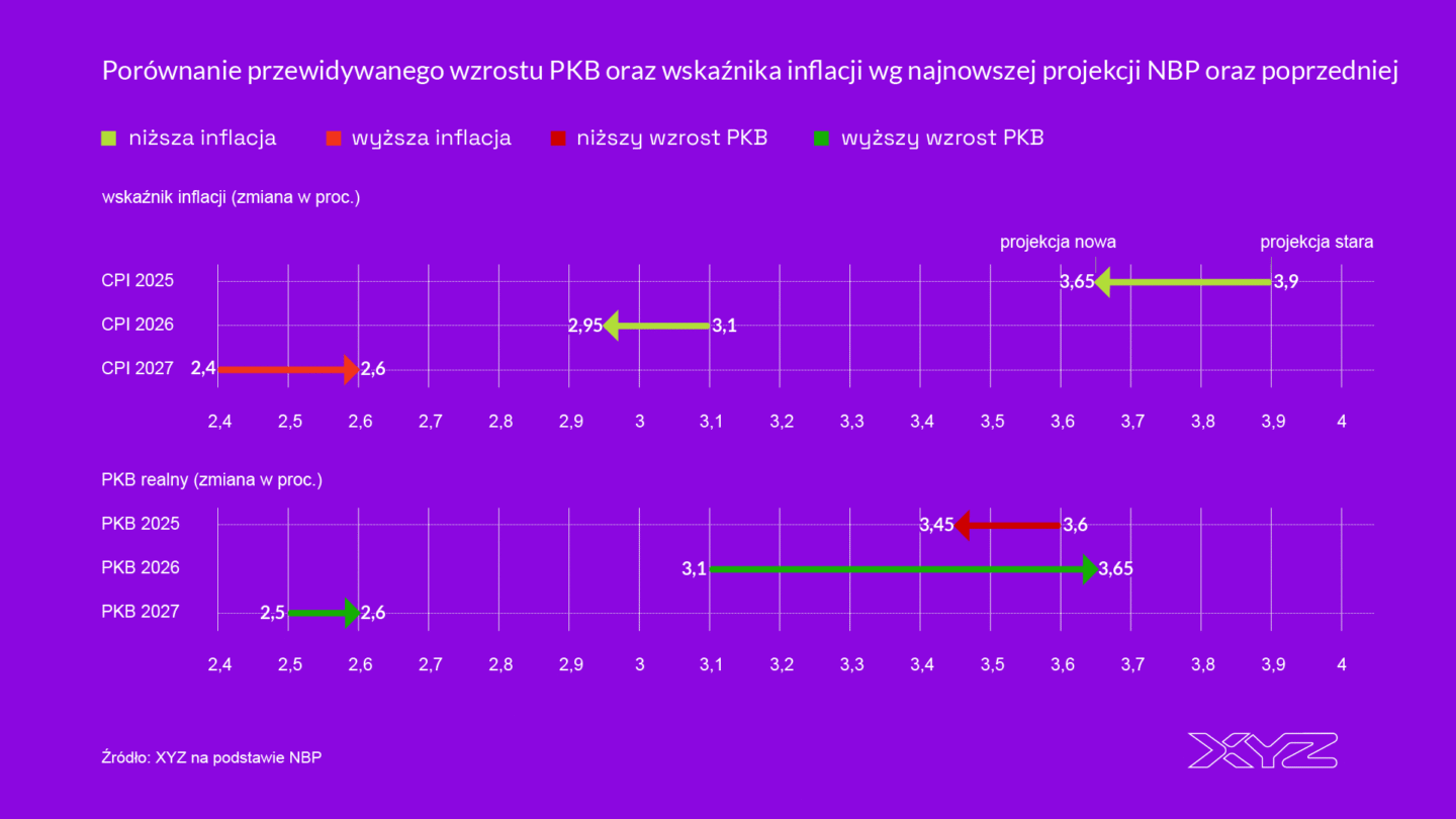 - Jak kształtuje się nowa projekcja NBP głównych wskaźników makroekonomicznych w porównaniu do poprzedniej.