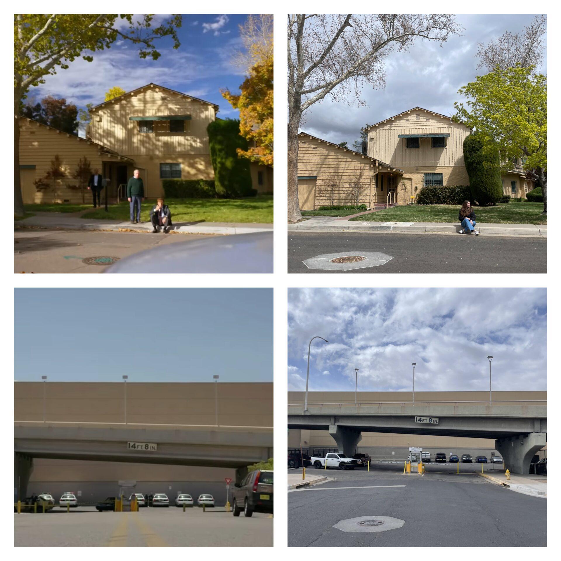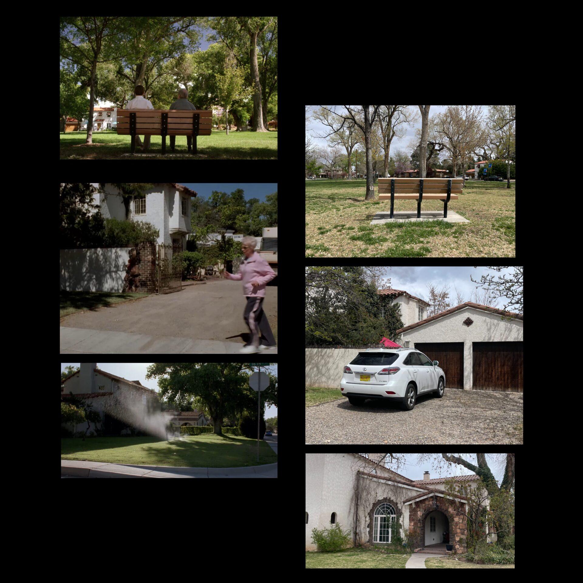 Ławka, na której w Better Call Saul" przesiadywali Charles i Jimmy McGill. Podjazd i wejście do domu Jessiego Pinkmana w pierwszych sezonach Breaking Bad". Z lewej serial, z prawej – rzeczywistość.