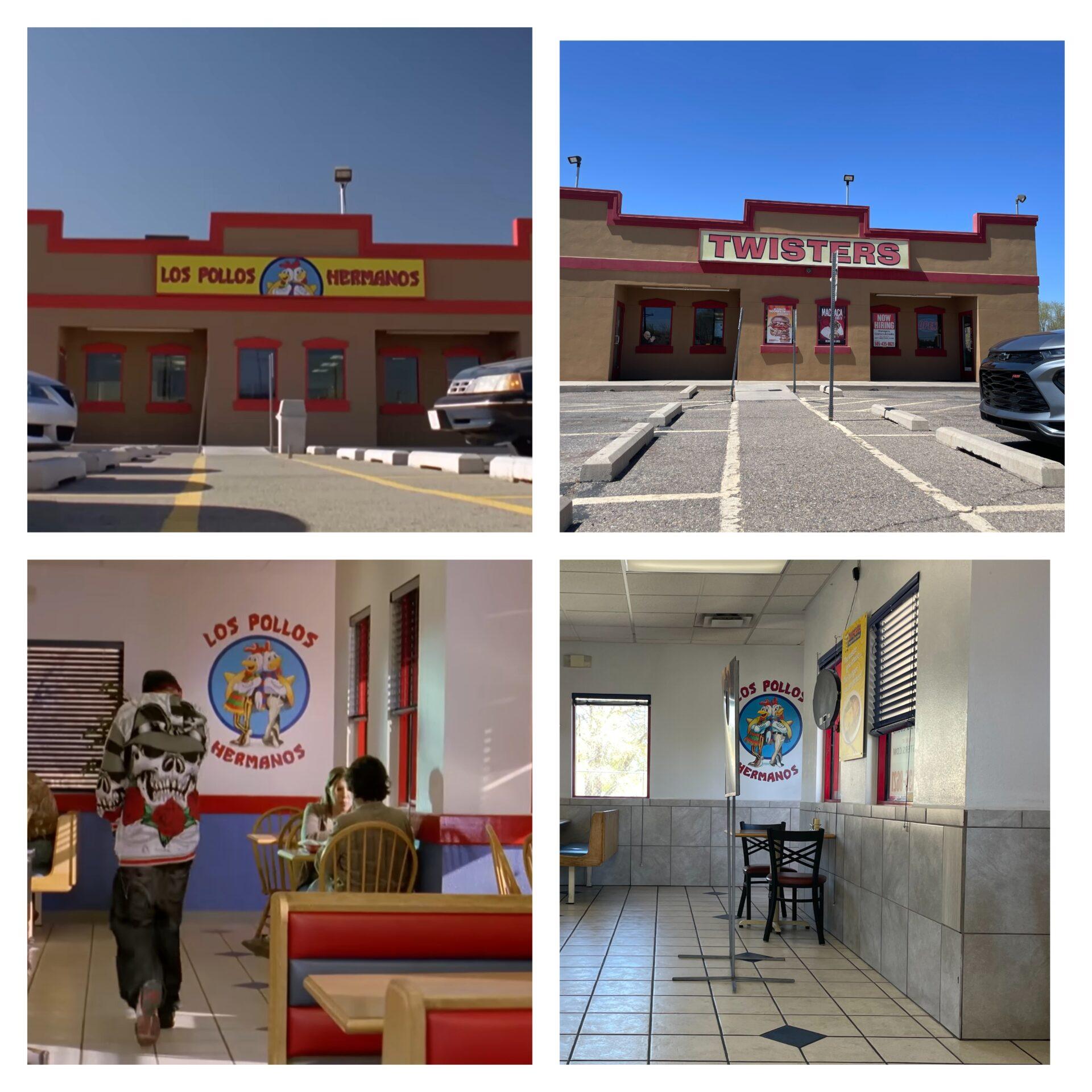 Restauracja Los Pollos Hermanos", która faktycznie jest częścią sieci fast-foodów Twisters", była kluczowym miejscem akcji zarówno w Breaking Bad", jak i Better Call Saul". Z lewej serial, z prawej – rzeczywistość.