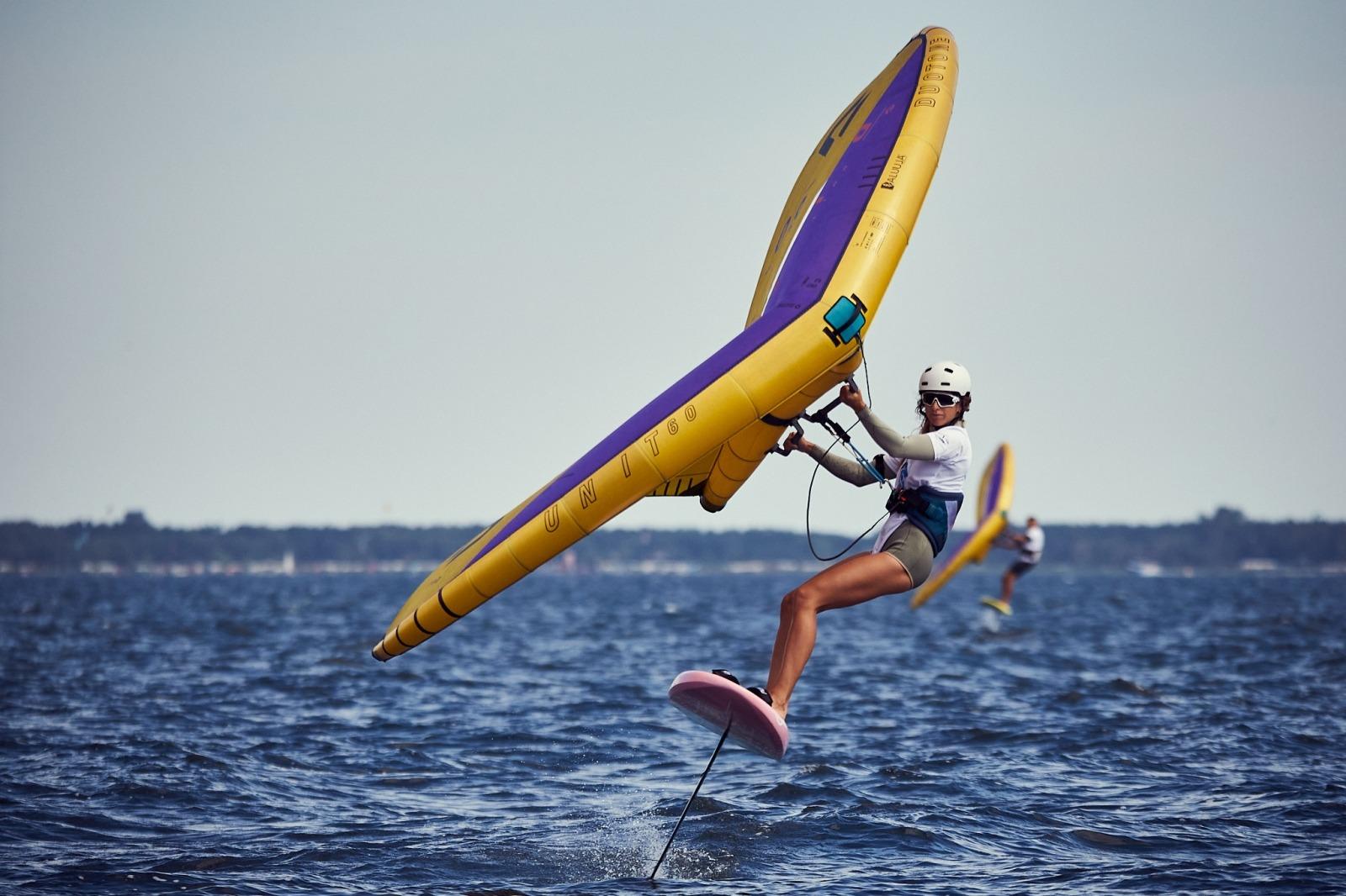 Wingfoil to nowa dyscyplina sportu, w Polsce zadebiutowała trzy lata temu. W ubiegłym sezonie na mistrzostwach Polski była popularniejsza niż kitesurfing Fot. materiały prasowe Mistrzostw Polski w Kitesurfingu i Wingfoilu
