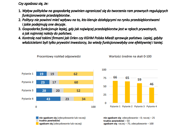 - 60 proc. – że politycy nie powinni mieć wpływu na to, w jakim kierunku podążają funkcjonujące na rynku przedsiębiorstwa i kto podejmuje w nich decyzje.