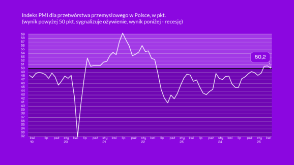 Wskaźnik PMI dla polskiego przemysłu w kwietniu 2025 r. wyniósł 50,2 pkt., co oznacza niewielką poprawę warunków w porównaniu do marca, ale także pierwsze oznaki osłabienia tempa wzrostu. Produkcja rośnie, ale prognozy na przyszłość stają się coraz bardziej pesymistyczne.