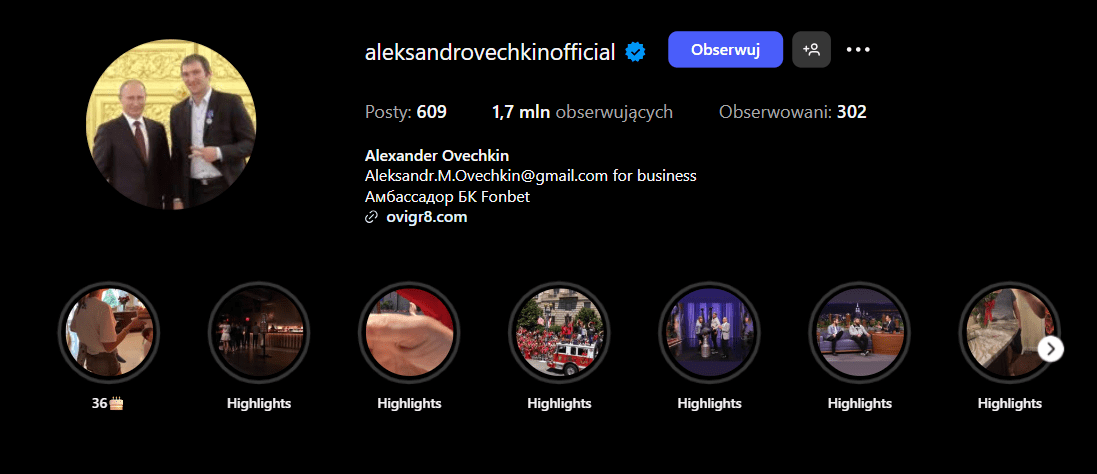 Owieczkin gra w NHL, bo sankcje na rosyjski sport co do zasady nie dotyczą indywidualnych występów zawodników w rozgrywkach ligowych. Zarządzającym NHL nie przeszkadza, że na profilowym zdjęciu na Instagramie Owieczkinowi towarzyszy Władimir Putin.