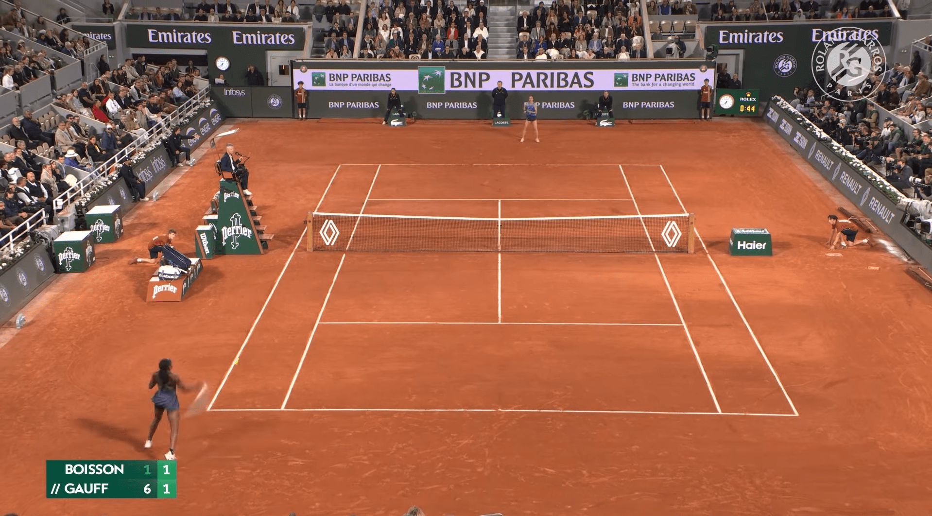 Choć logotypów sponsorskich na kortach Rolanda Garrosa jest sporo, wszystkie są spasowane z otoczeniem. Źródło: YT/Roland Garros