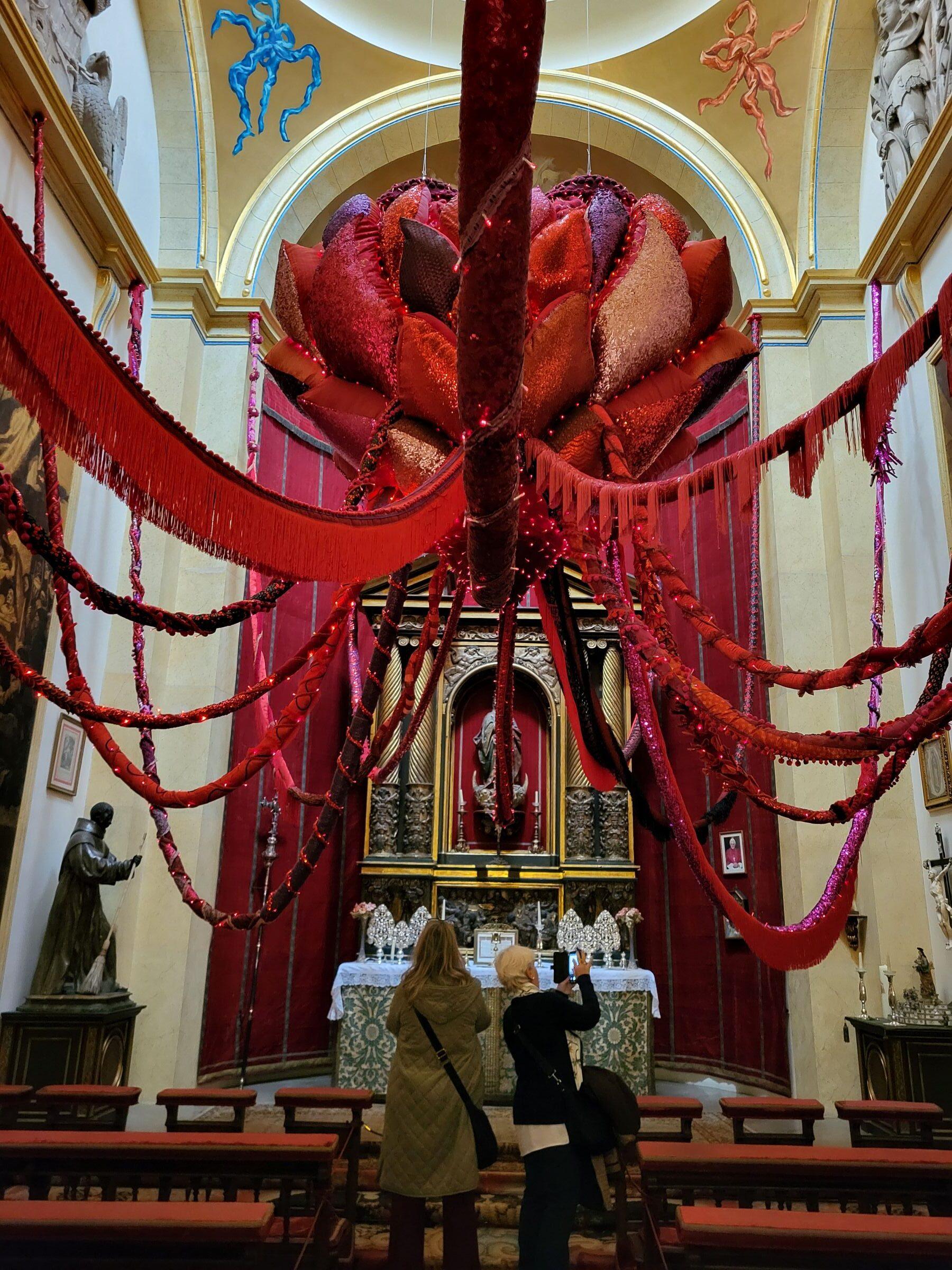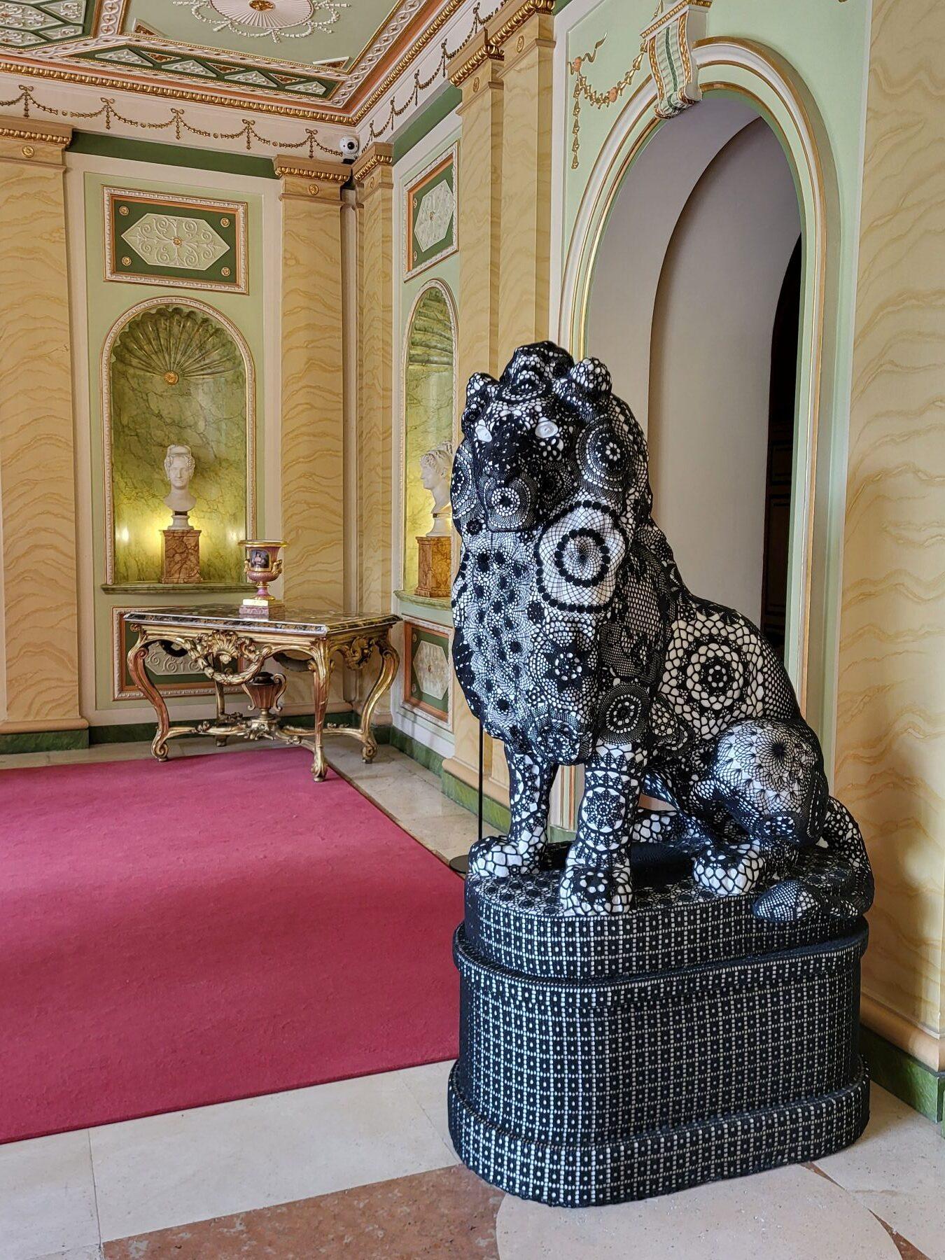 Ale jednym z najgłośniejszych przykładów takich flirtów historii i sztuki aktualnej jest – trwająca do końca lipca – wystawa w madryckim Palacio de Liria. W samym sercu Madrytu, gdzie historia przechadza się w aksamitnych pantoflach po marmurowych korytarzach, arystokratyczna siedziba rodu de Alba otwiera drzwi na oścież dla współczesnej artystki. Wystawa „Flamboyant” autorstwa Joany Vasconcelos to nie tylko ekspozycja, to artystyczna inwazja, która z wdziękiem i humorem wkracza dużo dalej niż wszystkie dotychczasowe interwencje twórcze w przestrzeniach tego pałacu, tworząc dialog między przeszłością a teraźniejszością.