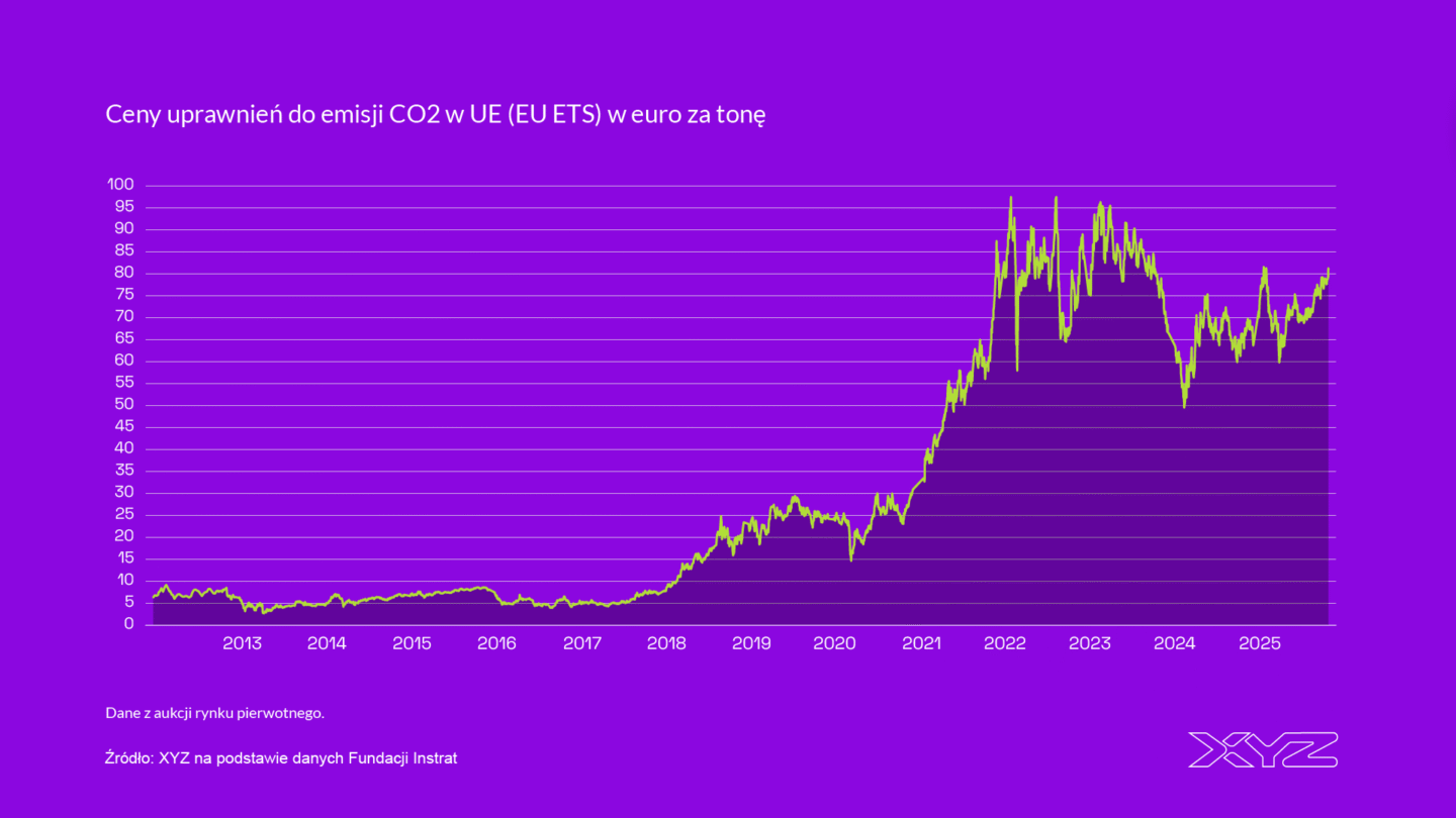 Wówczas doszło do nałożenia się dwóch czynników, które doprowadziły do ogromnego wzrostu cen energii. Pierwszy był wzrost cen uprawnień do emisji CO2 w ramach mechanizmu ETS. Przez półtora roku, od końca 2020 r. do połowy 2022 r., średnie ceny wzrosły ponad trzykrotnie. Z poziomu ok. 25 euro za tonę do ponad 80 euro.