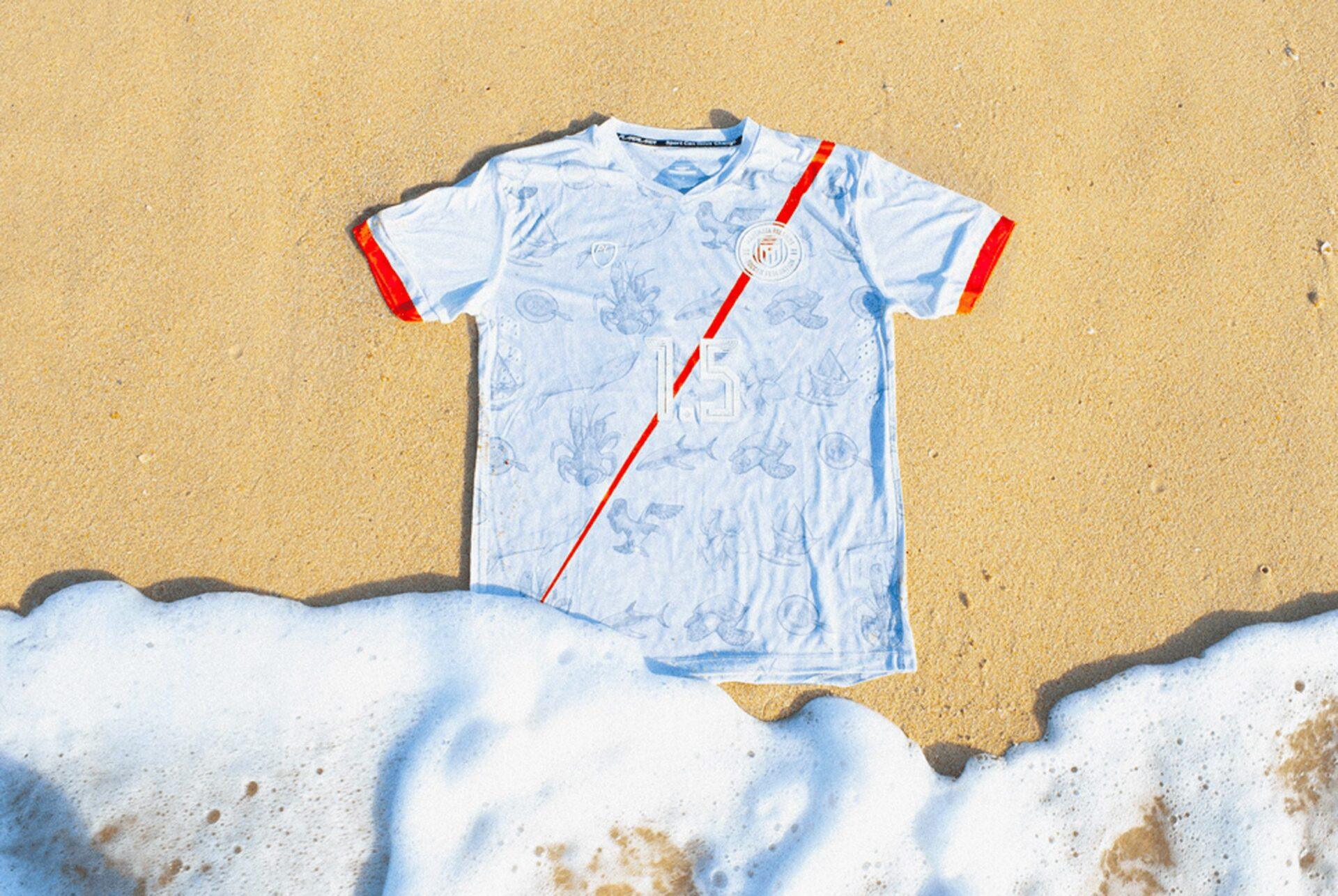 „Znikająca” koszulka piłkarzy Wysp Marshalla. Źródło: Marshall Islands Soccer Federation